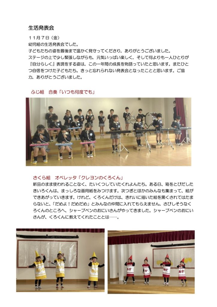 【園の様子】11月7日 「生活発表会」
